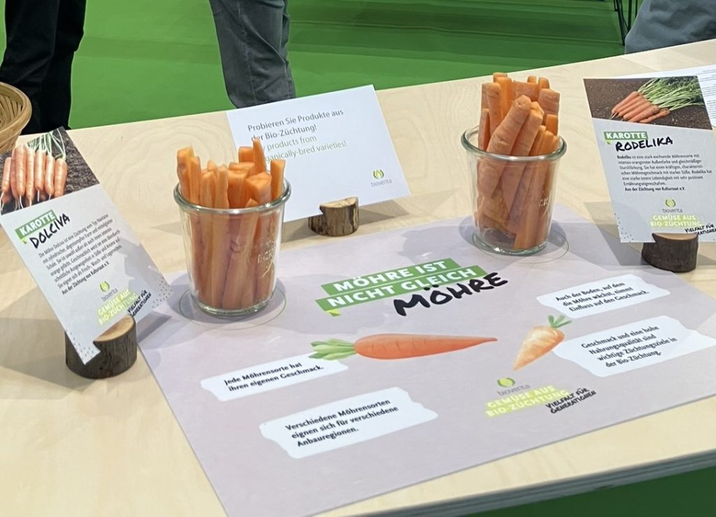 Während der Messe gibt es am Stand fünf Vorträge, die über verschiedene Züchtungsprojekte, die zu erwartenden Auswirkungen der Deregulierung von NGT sowie die Marktpartnerschaften von bioverita berichten. An zwei Terminen wird außerdem der Möhren-O-Mat (mehr Infos dazu unten) präsentiert.
